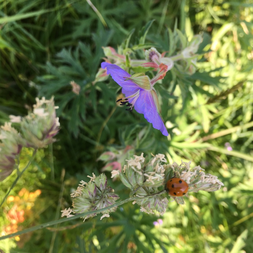 We make and sell small bale meadow hay at the farm, which brings benefits to many different species. Leaving the grass longer to set seed allows butterflies to lay eggs on the stems and insect life to flourish. Small mammals also benefit from areas of long grass, even in the margins and this in turn has helped our owl population.