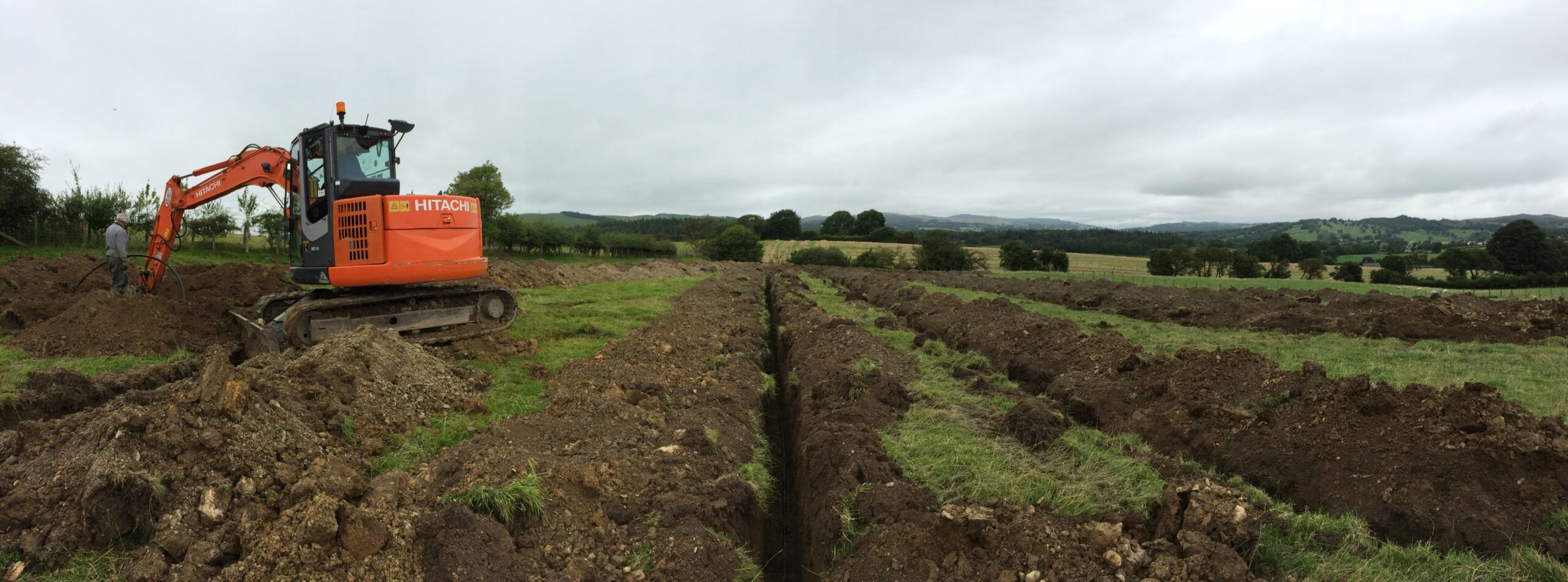 The most recent move towards renewable energy came when Graham and Jenny moved into “The Granary” an annexe to the main farm building and installed a Ground Source Heat Pump to heat that part of the building. Again we were lucky enough to find grant help. The ambitious system was put in with an enormous length of underground pipework and spaced out carefully to cope with Llandegla winters. So far, so good!