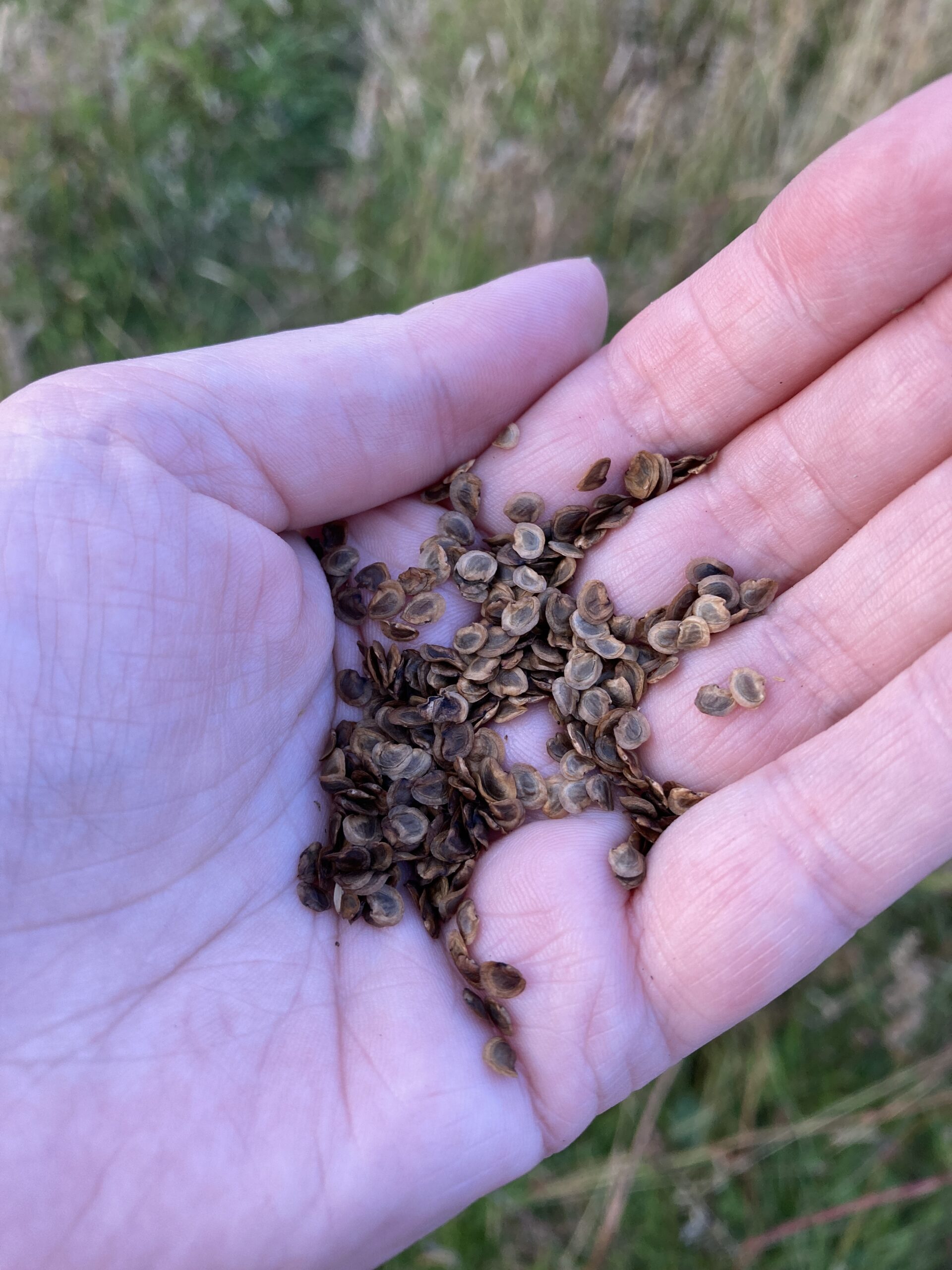 Here at Ty’n Y Llidiart we grow and collect Yellow Rattle seed by hand each year. The plant has spread well across our “top field” since we introduced it, partly helped by four legged friends at the farm.