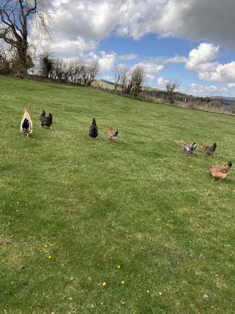 Our laying flock here at Ty’n Y Llidiart in the hills of Denbighshire are given access to a rich variety of forage and wide open spaces. This makes for the very tastiest eggs and happy hens.