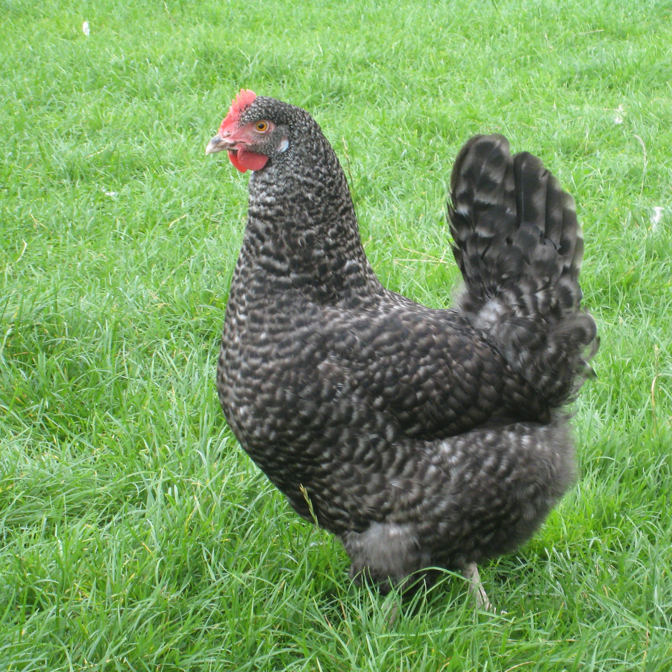 The Maran hens are most notable for their lovely large dark brown eggs, and are good layers. They are classed as a heavy breed and one of our Marans is top of the free range flock pecking order. We have Cuckoo coloured Marans in our flock.