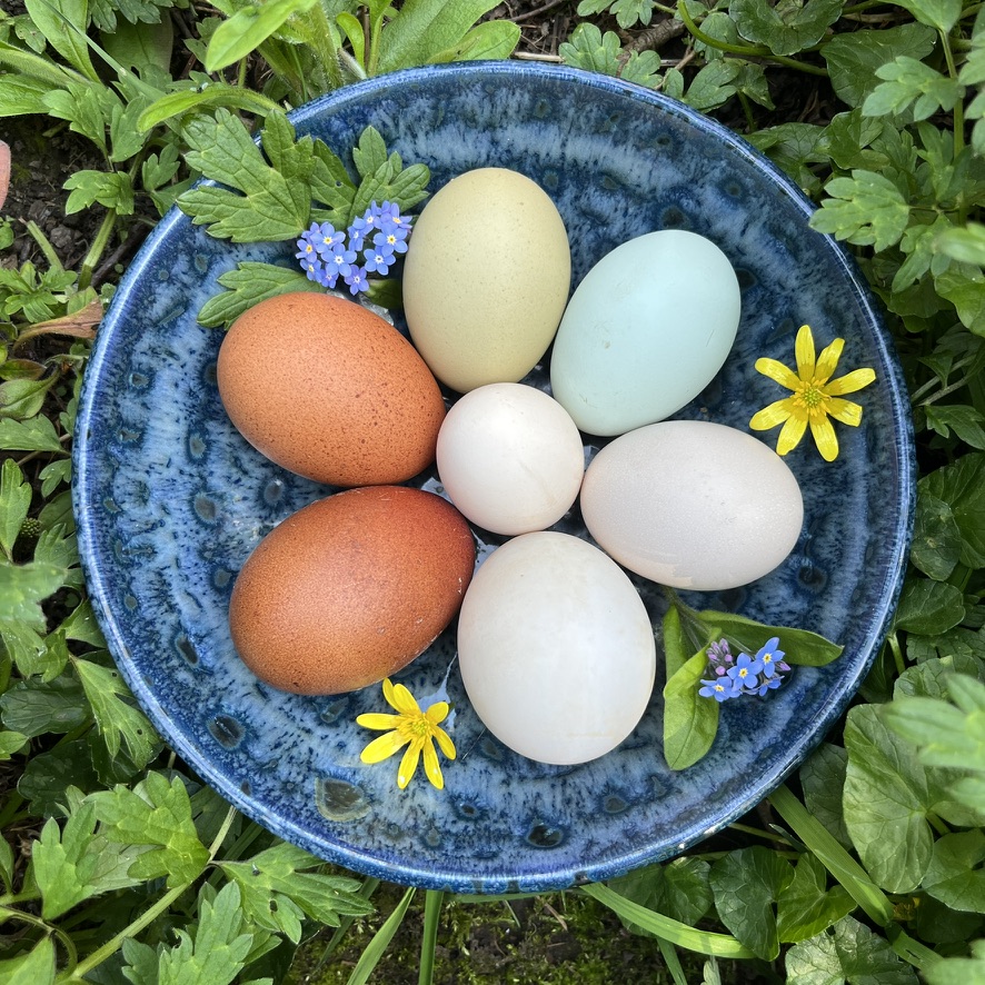 We also sell eggs from the farm gate, and although I’m biased they really are the best eggs I’ve ever tasted. It is great fun choosing which egg to eat every morning as we have so many colours – pale, speckled, green, blue, dark brown and many shades in between.